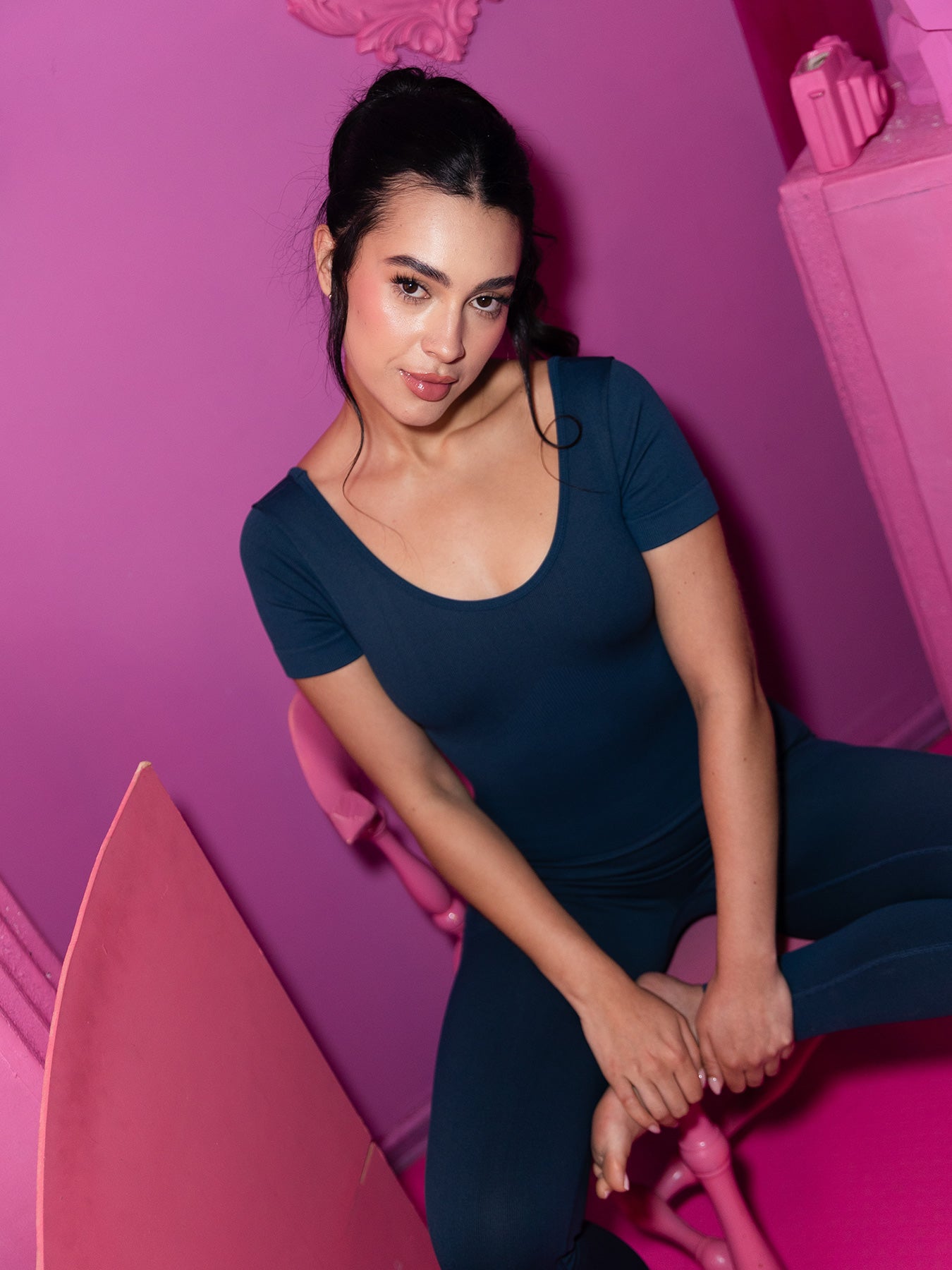 que diseña y crea prendas que inspiran y retan a las mujeres a moverse al mejor ritmo de la vida, recordándoles constantemente que los límites solo están en la mente.