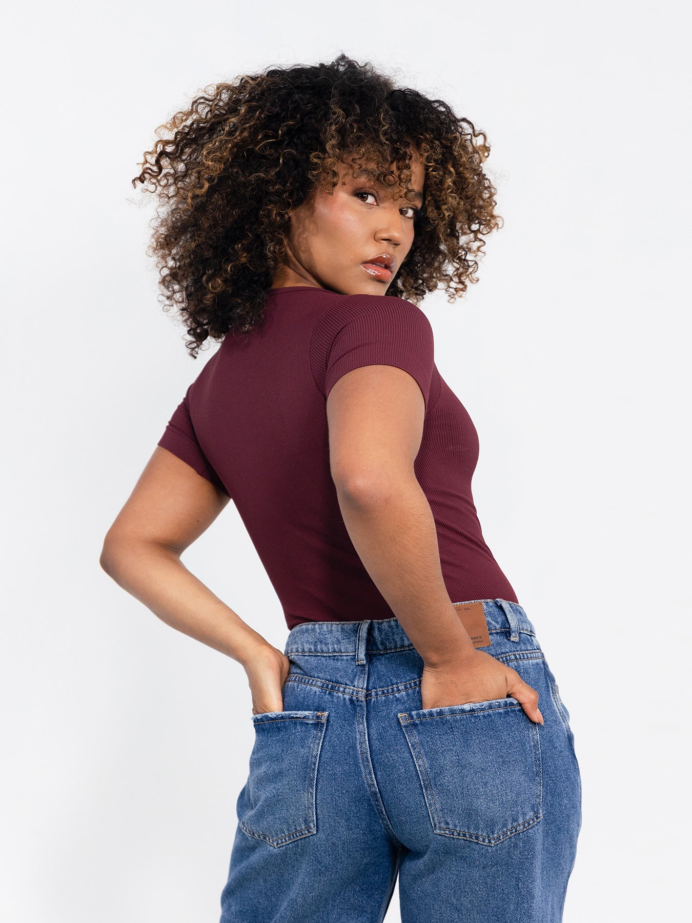 Cómodo, estilizado y listo para TODO. Este body en color Vino se ajusta perfecto, realza tu silueta y te acompaña en cualquier plan: desde tu entrenamiento en el gym, hasta una salida casual o una noche con amigas.