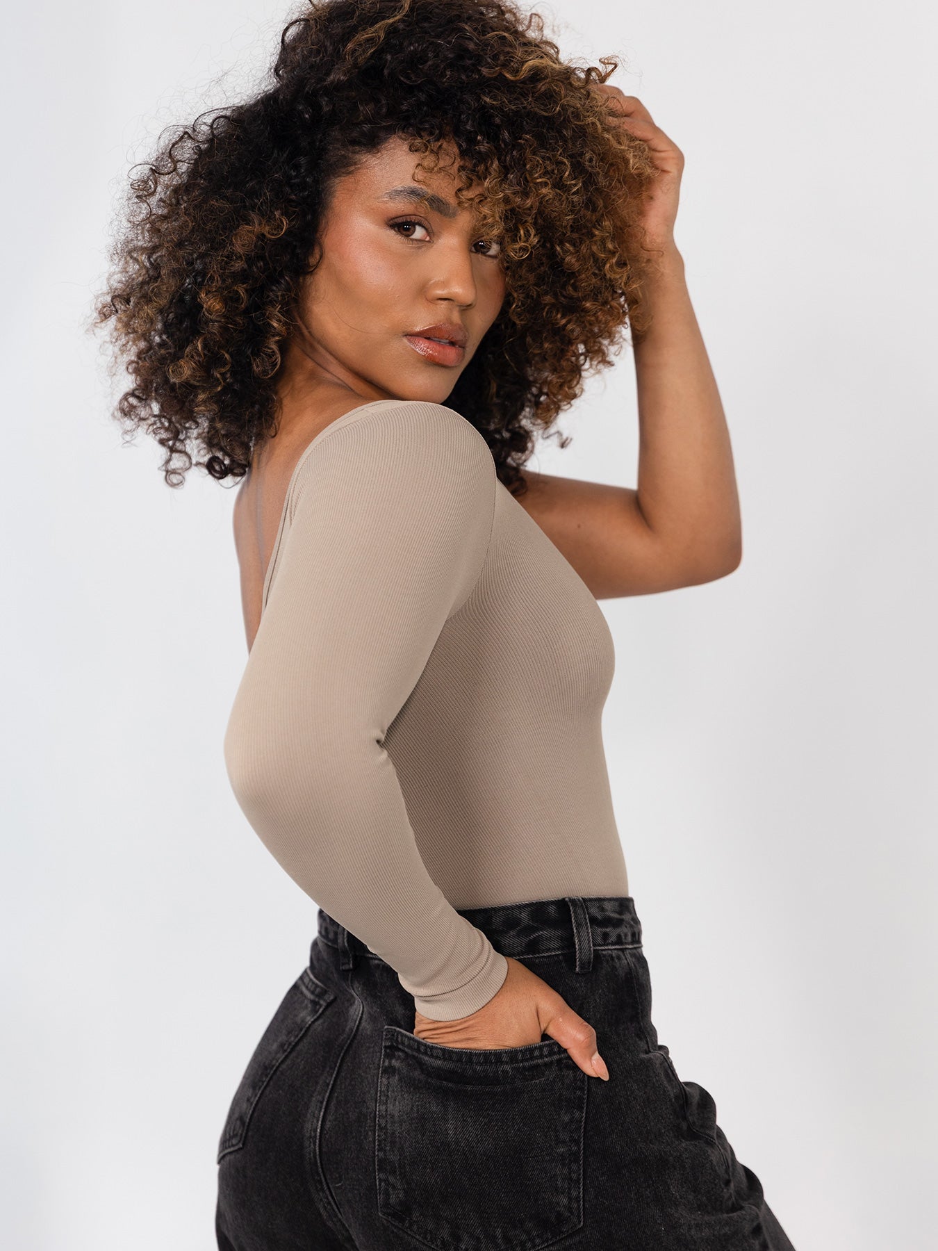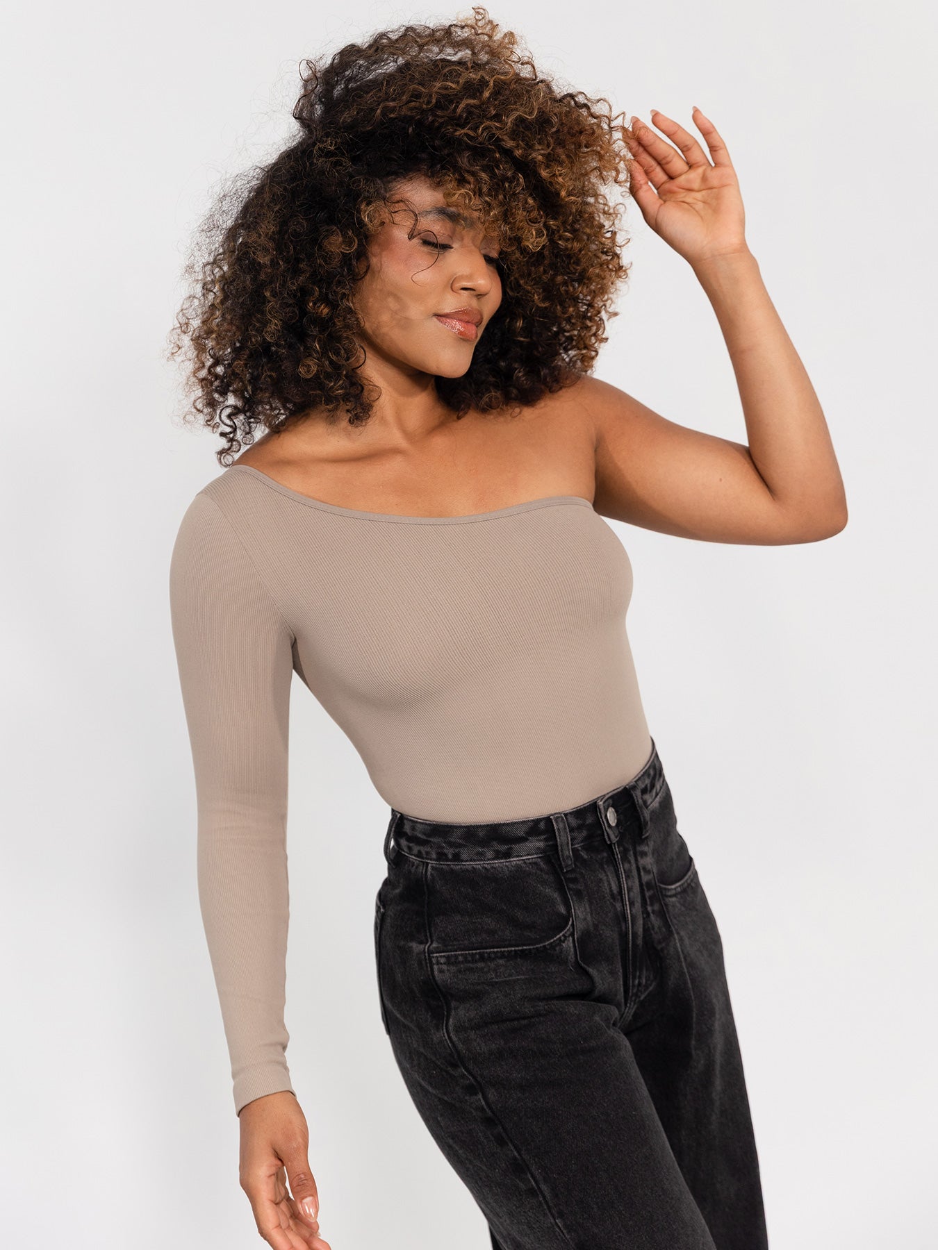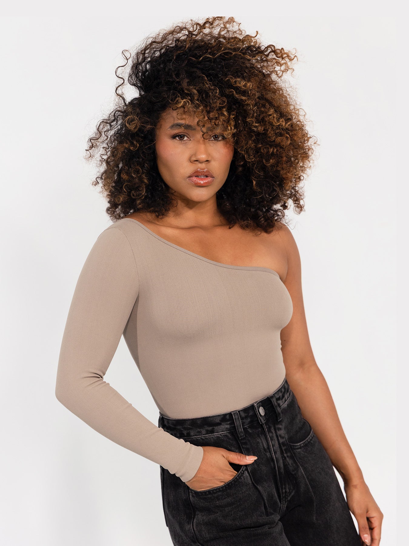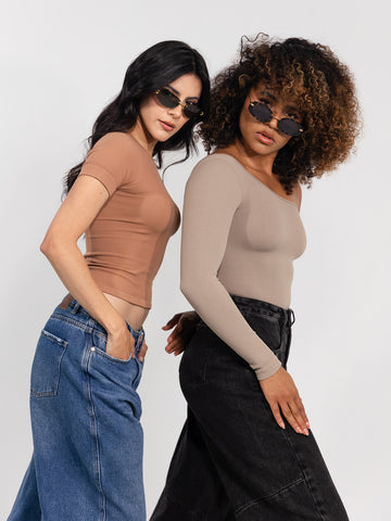 ¡La elegancia en su máxima expresión! Un diseño asimétrico en color Quarzo que rompe lo convencional y se convierte en el protagonista de cualquier look. Su manga larga en un solo hombro aporta un aire sofisticado y seductor, mientras que su ajuste perfecto estiliza tu silueta y potencia cada curva con delicadeza. Confeccionado en un tejido de control suave que abraza tu cuerpo, te brinda comodidad, seguridad y libertad de movimiento en todo momento. Es versátil: combínalo con jeans para un look casual chic, con faldas o pantalones para la noche, o úsalo como prenda estrella en ocasiones especiales, incluso lo amarás en tus entrenos. Cubre desde la talla XS a L, con una elongación impecable que se adapta a ti y realza tu belleza natural. ¡No te quedes sin el!
